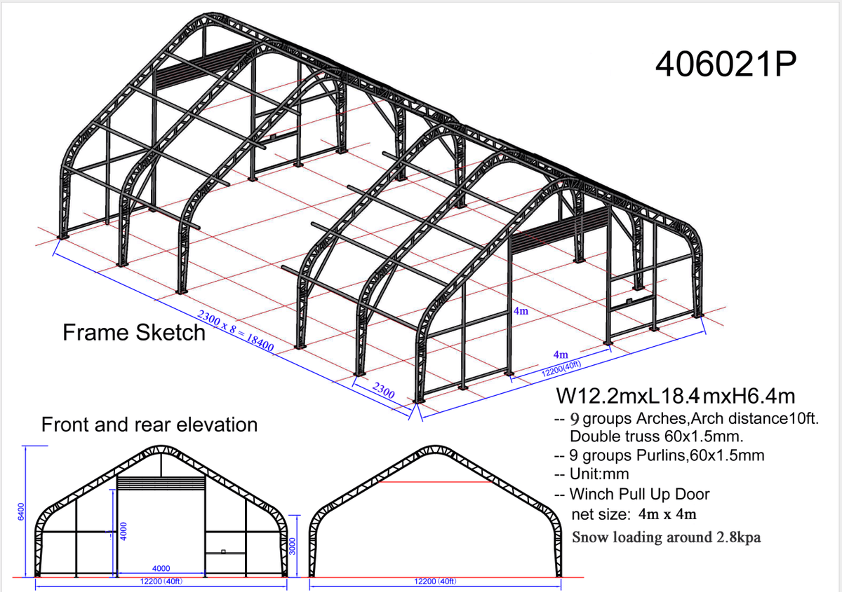 Fagverkskonstruksjon: Galvaniserte stålrør med doble buer som forsterker ytterligere enn telt på markedet som kun har enkle buer.