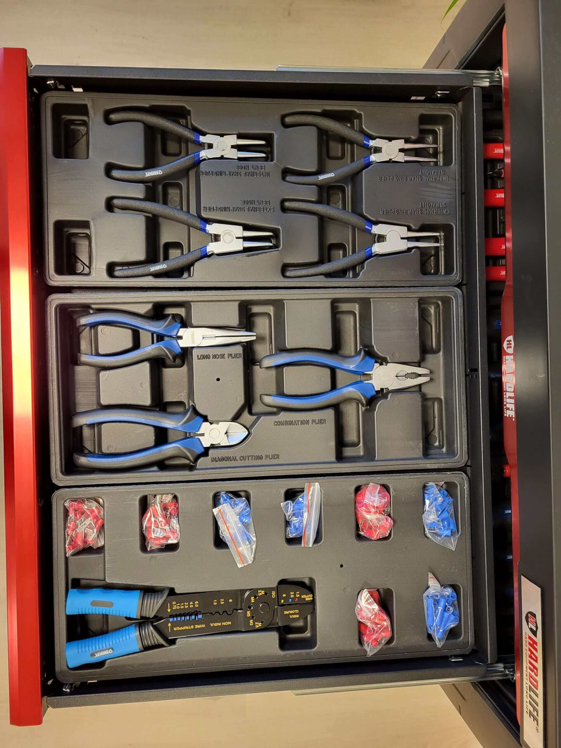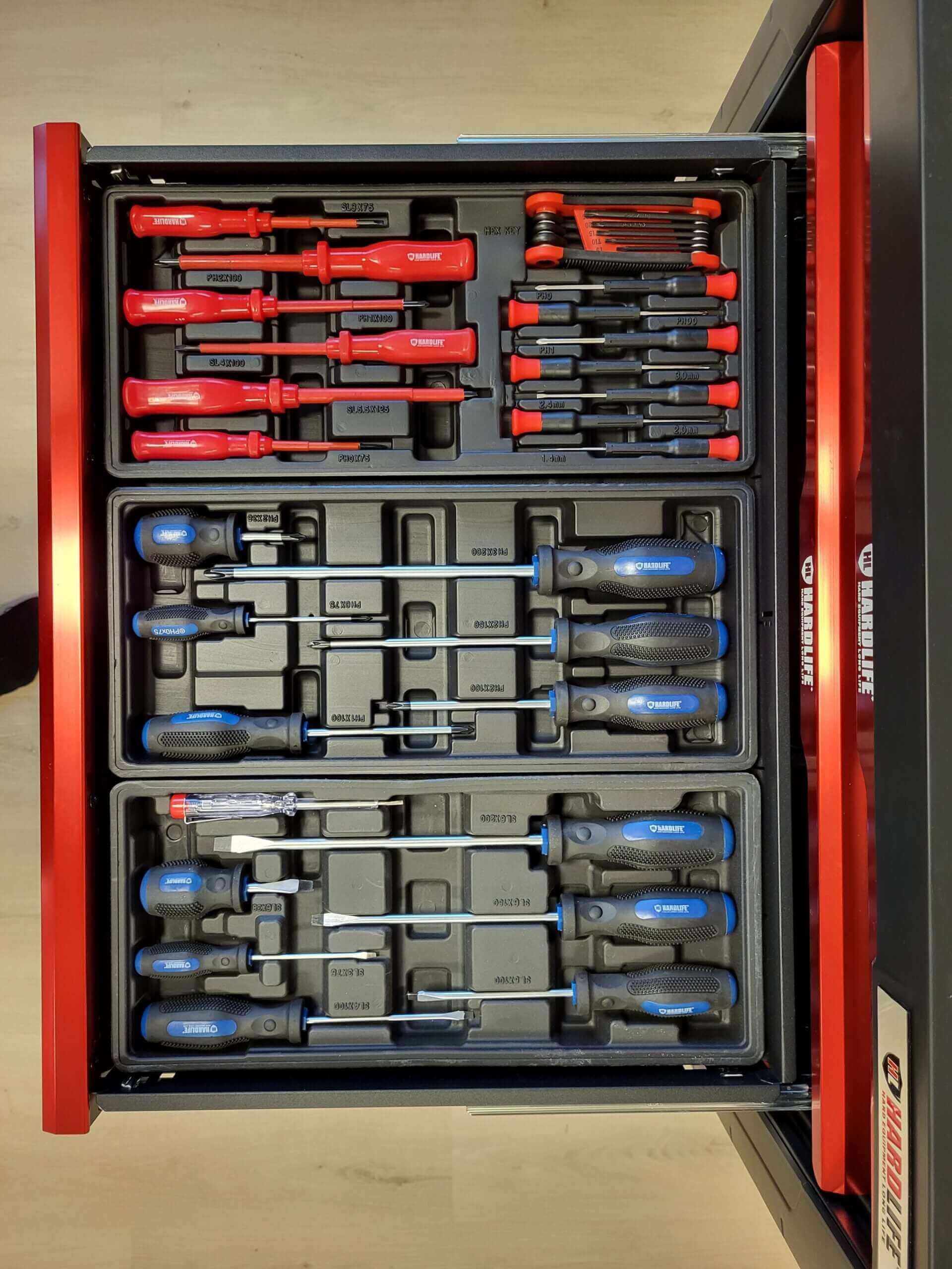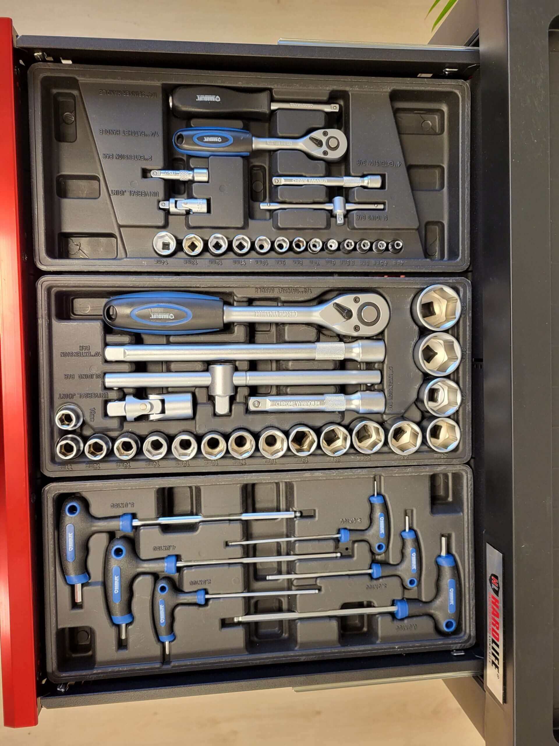 Fire av skuffene inkluderer 343 forskjellige håndverktøy og deler!